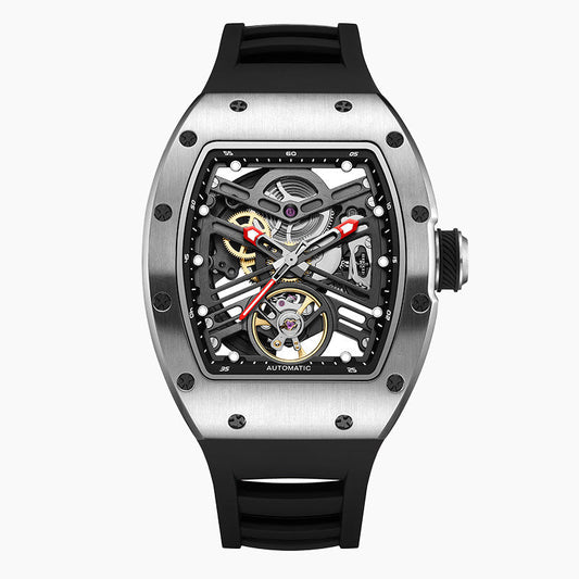 Skeleton Face With Rubber Strap Mechanical Movement Waterproof Watch