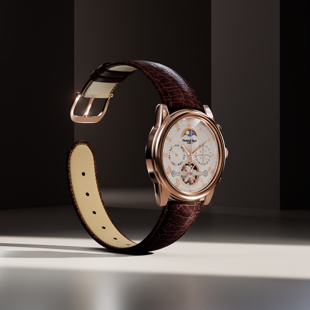 Featuring a Day-Night Indicator, Day and Date displays, and a Business Quarter function, the Complexity Automatic offers a well-balanced presentation of these complications. The dial, set against a textured ivory white guilloche background, ensures clarity and subtle sophistication. The 210-part 20-jewel automatic movement receives additional calibration and adjustment for optimal reliability and precision, powering its performance.