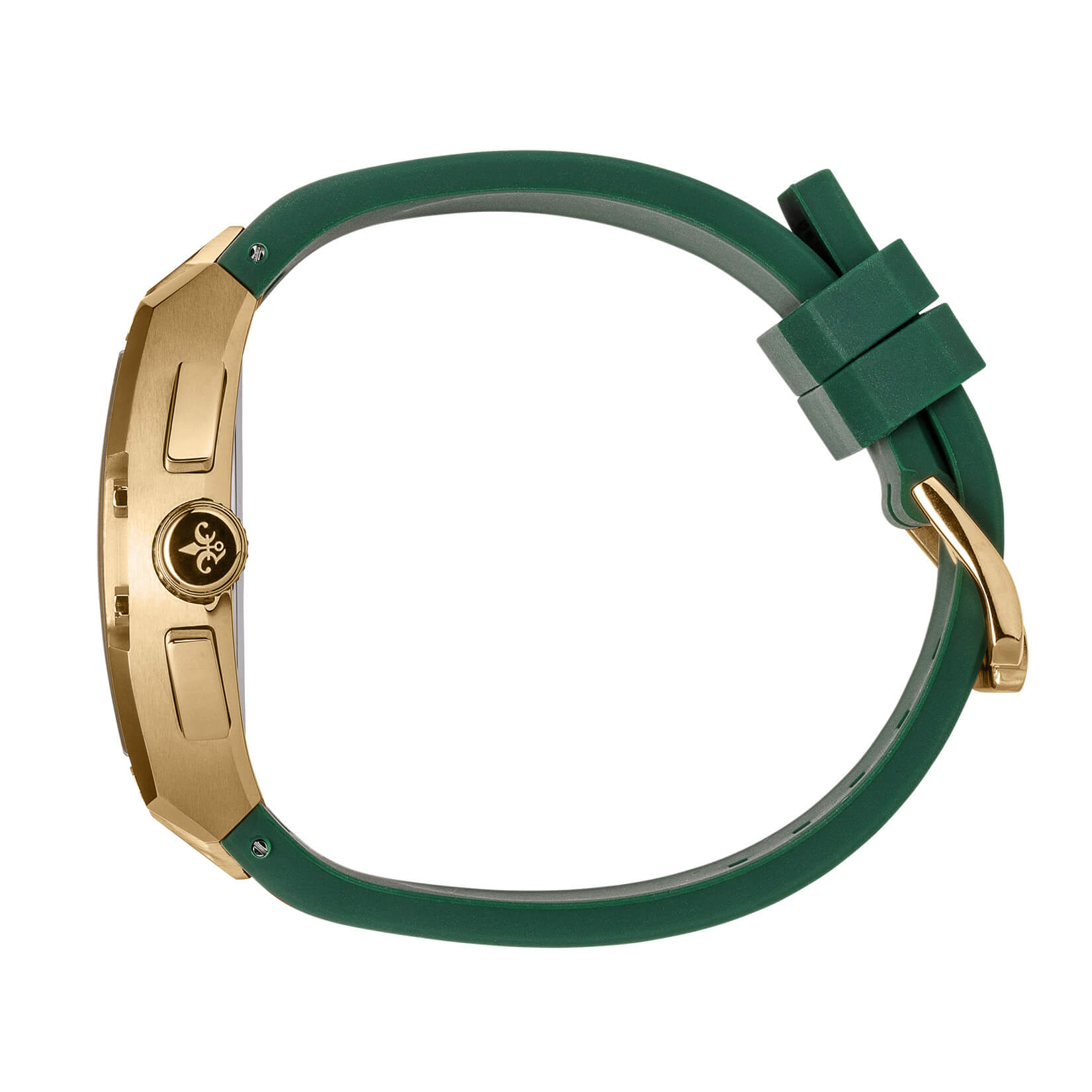 | Dial Feature: | DIAL | Part Skeletonized, Multi Layered Gold & Accent Green |