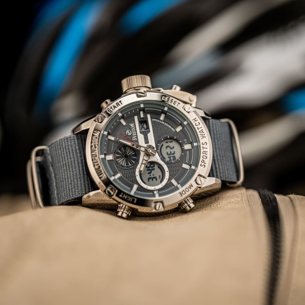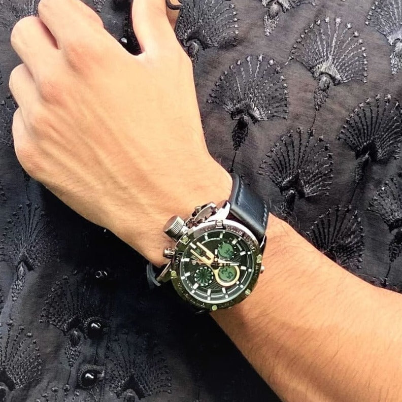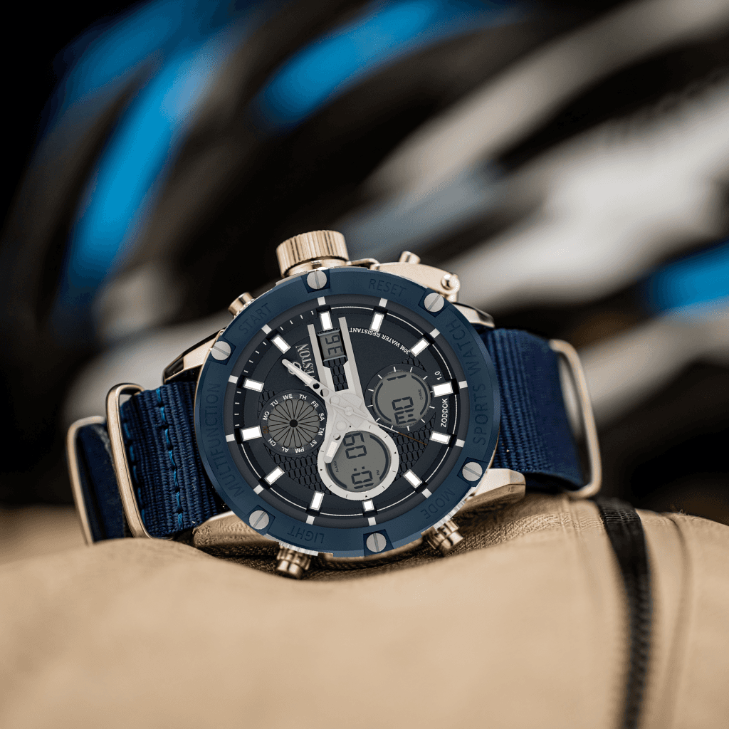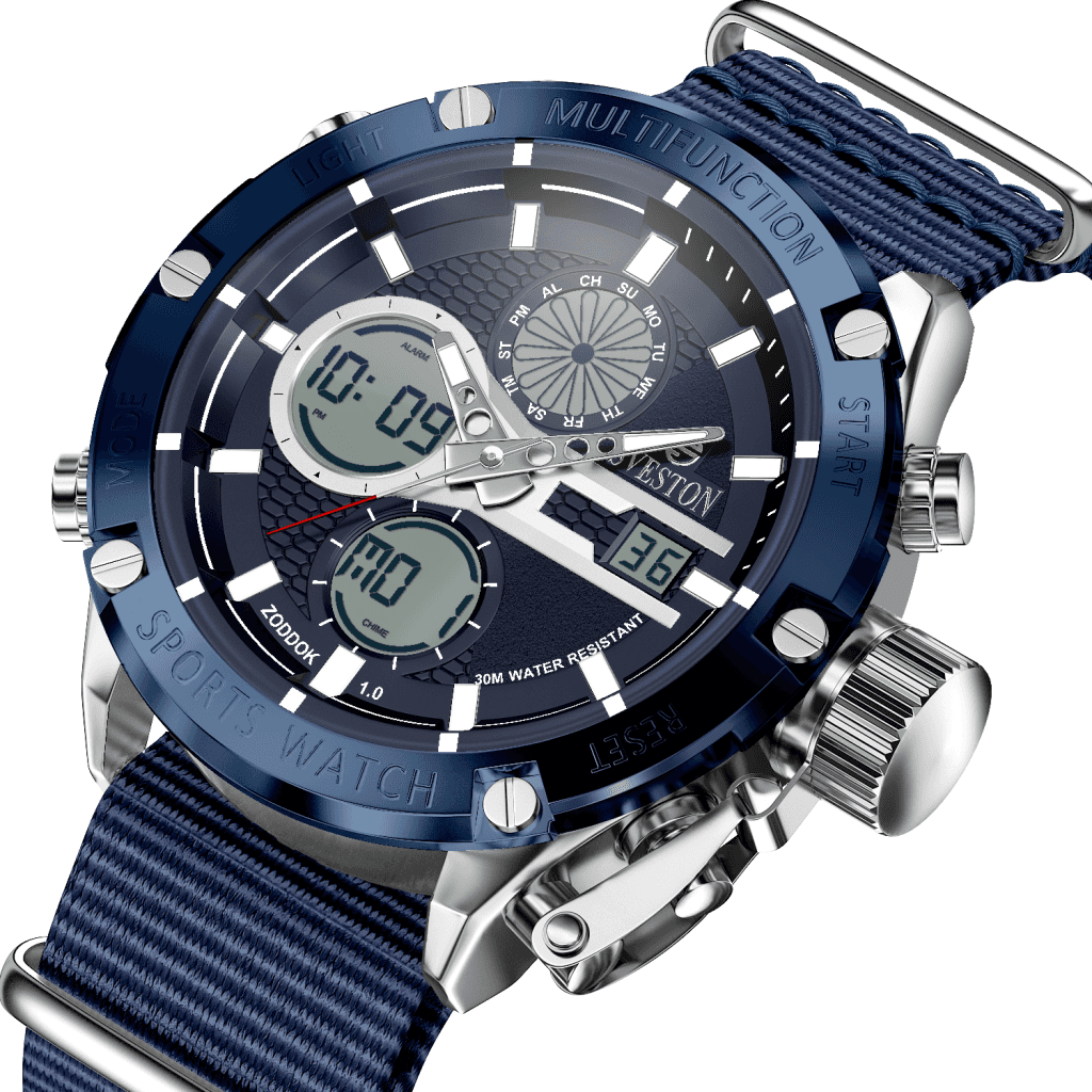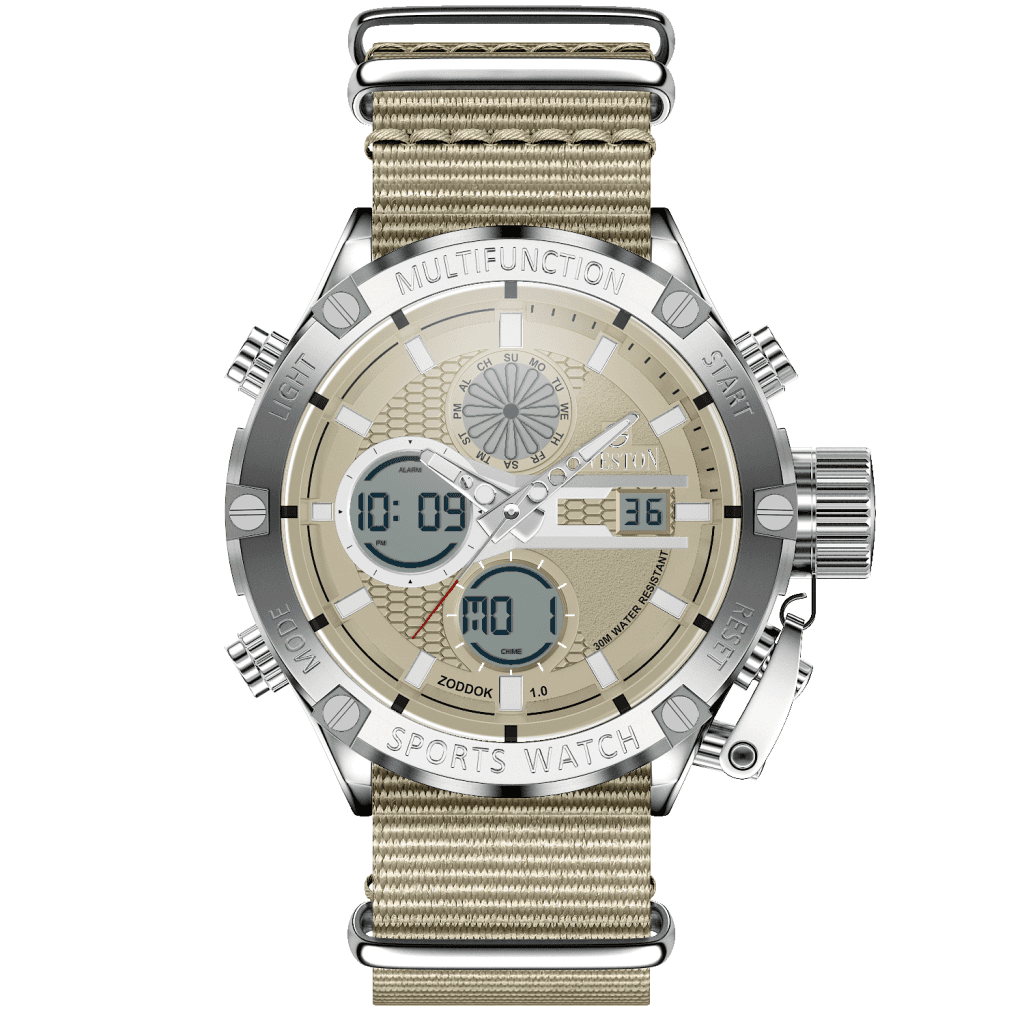 Zoddok-a men's watch made with Japanese Quartz movement. Its 46mm case size and 51mm lug-to-lug distance offer a perfect fit for any wrist, while its lightweight design at 116 grams makes it comfortable to wear all day. With 3ATM water resistance, this watch is not only stylish but functional too
