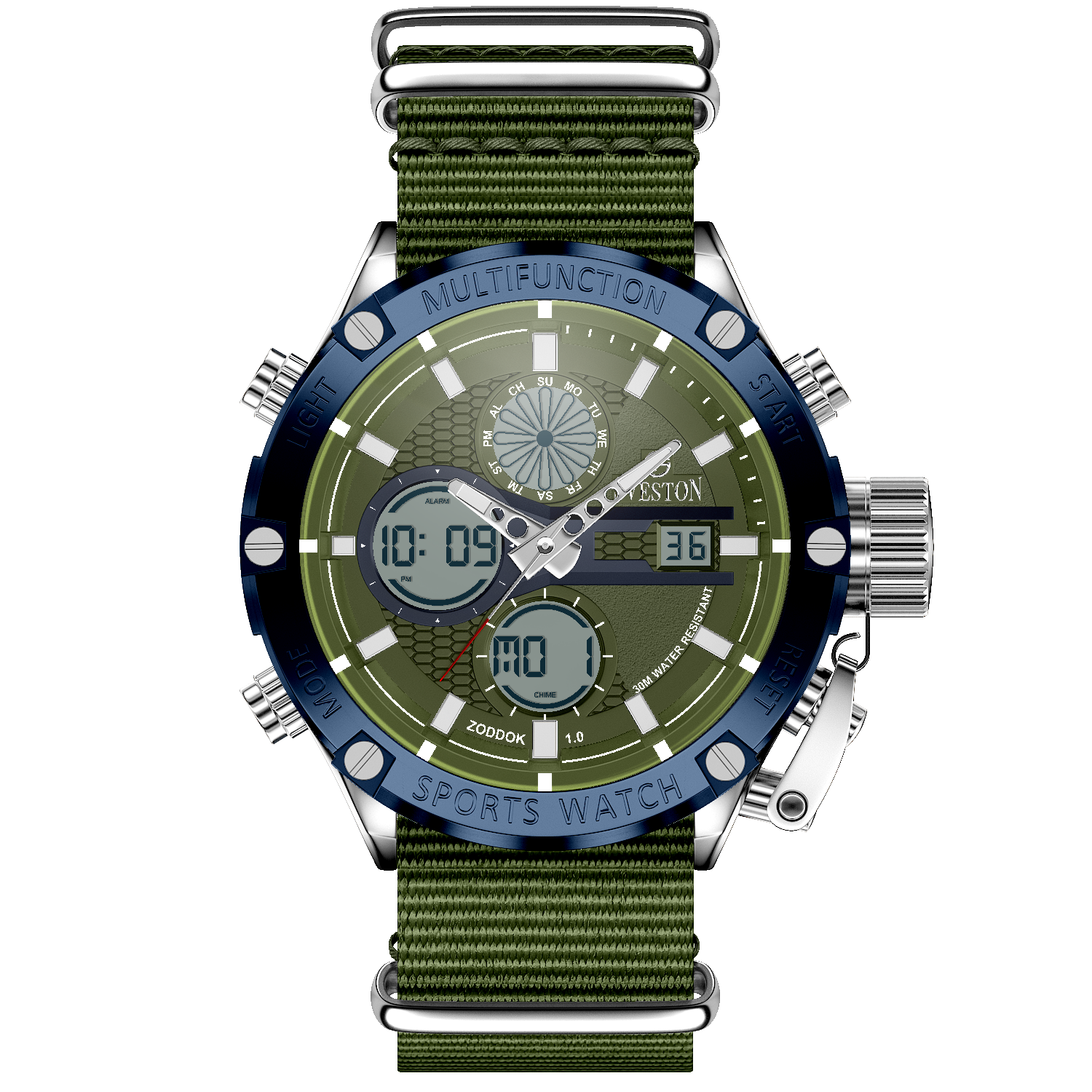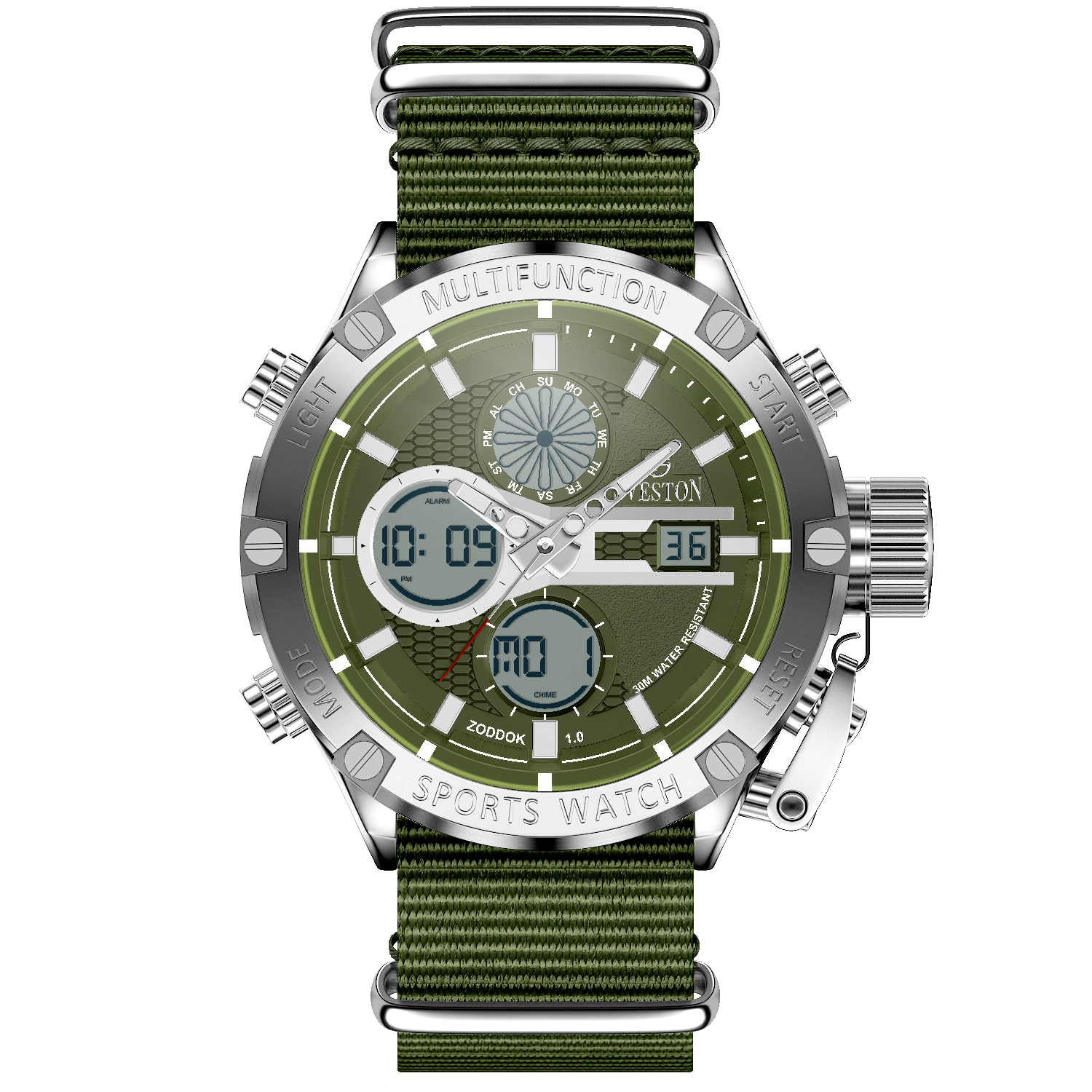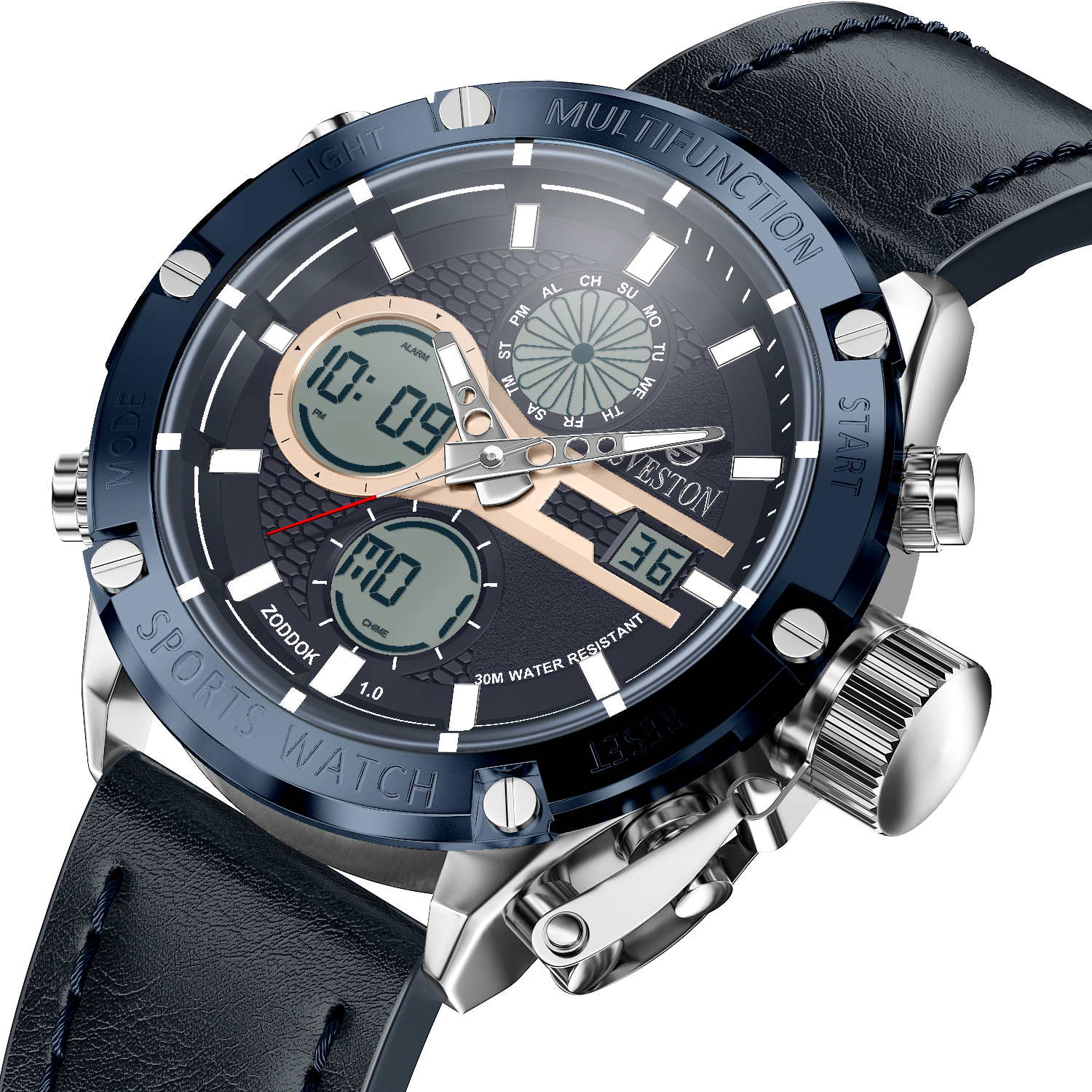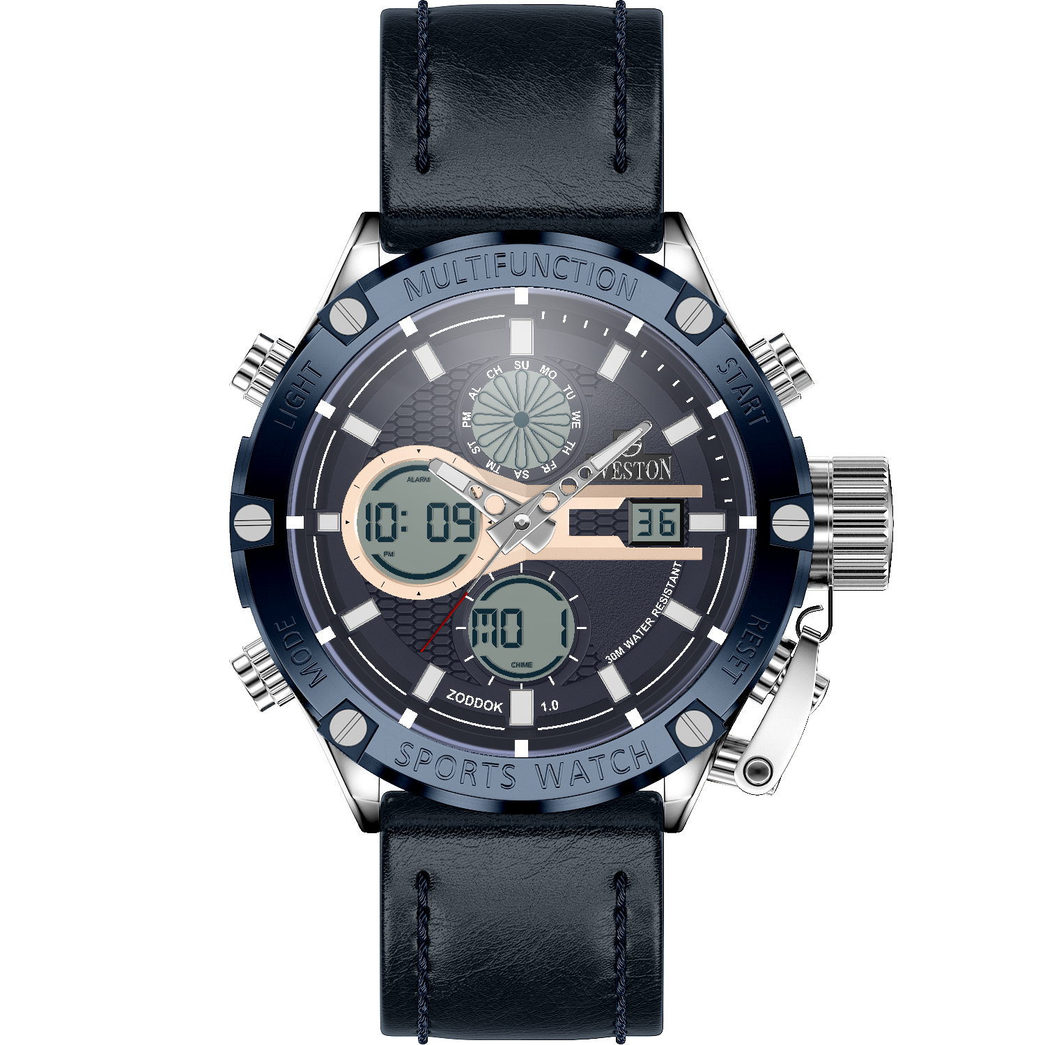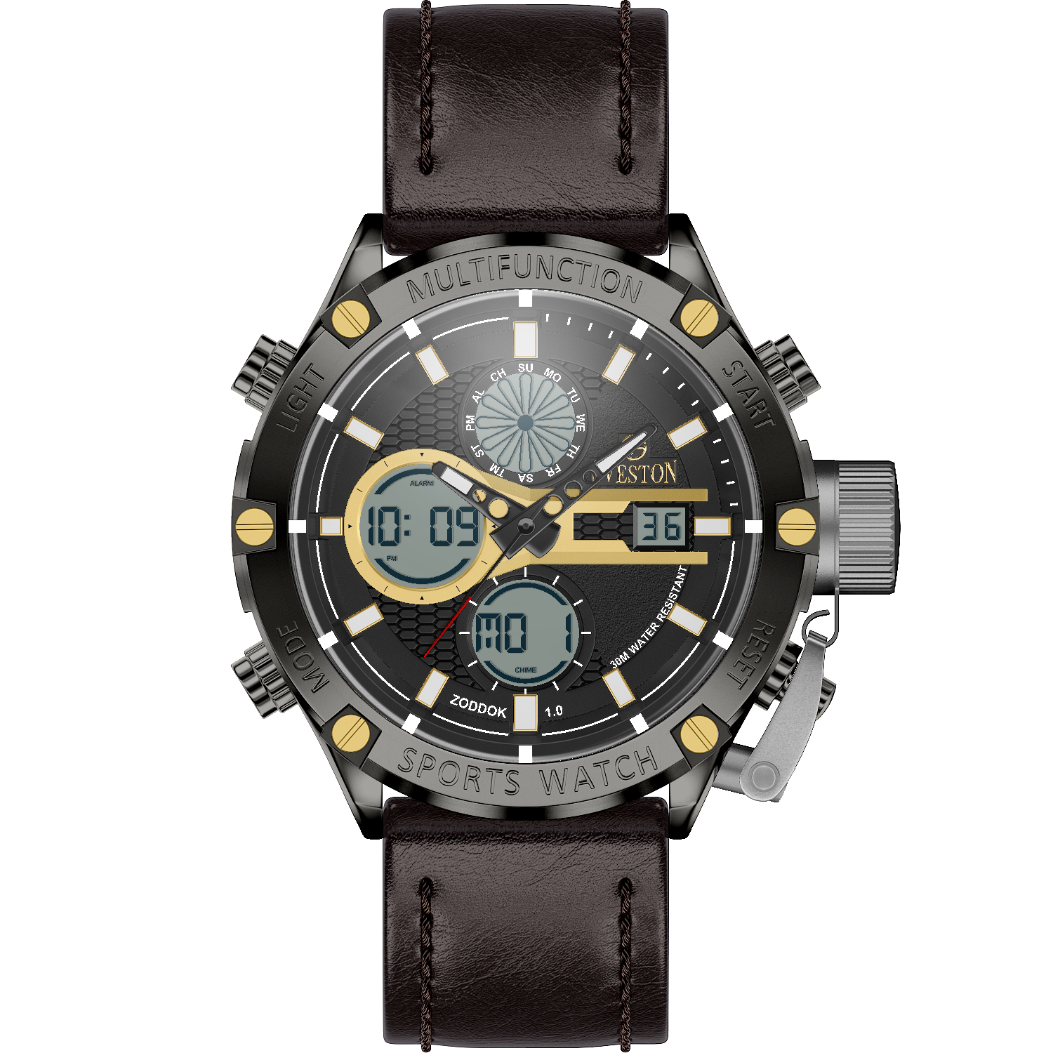 Zoddok-a men's watch made with Japanese Quartz movement. Its 46mm case size and 51mm lug-to-lug distance offer a perfect fit for any wrist, while its lightweight design at 116 grams makes it comfortable to wear all day. With 3ATM water resistance, this watch is not only stylish but functional too